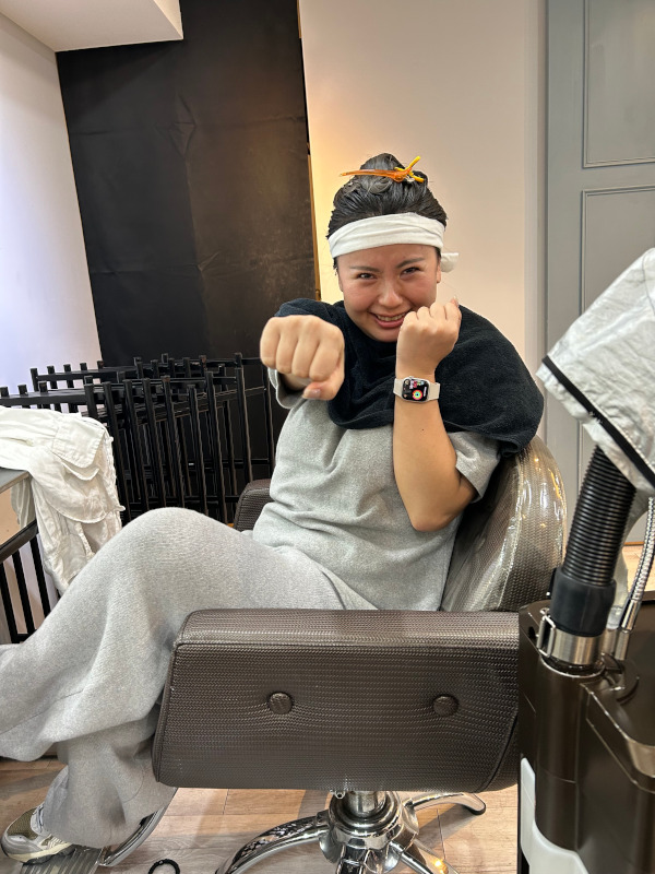 その後は頭皮マッサージと肩揉みが続きましたが、想像していた「可愛い姿」とはあまりにかけ離れていて、またもや爆笑です。